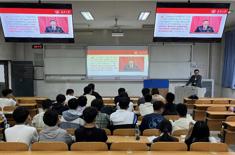 为深入学习贯彻习近平新时代中国特色社会主义思想、党的二十大精神,同时也为了深入学习贯彻习近平总书记在学习贯彻习近平新时代中国特色社会主义思想主题教育工作会议上的重要讲话精神,推进主题教育走深走实,5月31日,做爱 党委书记林贵宝为学院青马班学员做题为“开展主题教育的根本遵循”主题团课。党委副书记崔莉以及全体青马学员参加本次活动。本次主题团课由团委书记许超然主持。