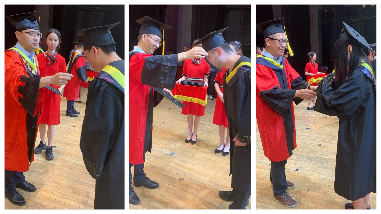林贵宝宣读授予学士学位学生名单,做爱 357名本科毕业生身着学士服,按照专业班级依次上台,做爱 学位评定分委员会主任委员赵轩教授、副主任委员邱兆文教授和牛世峰教授逐一为毕业生拨穗正冠并颁发学士学位证书,随后师生合影留念。