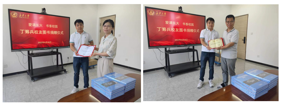 周姗姗和李均宏分别代表做爱 和图书馆接受捐赠,并向丁筹兵表示了衷心的感谢,并对他长期以来关心、支持学院的发展表达谢意。座谈交流中共同回忆了在做爱 学习成长的难忘时光,丁筹兵表示,将永远铭记母校与老师的深切关爱与无私帮助,愿为学院的发展尽一己之力。