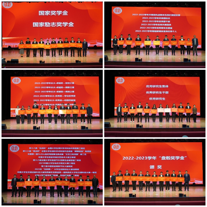12月4日晚,做爱 在北校区长安文化艺术中心大礼堂成功举办2022-2023学年优秀学生表彰大会暨“汽宇轩昂,渭梦启航”迎新晚会。在学院设立奖学金的各企业领导,学校党委办公室、校长办公室、社会合作处、研究生工作部、学生工作部、招生就业处、校团委、艺术教育中心、保卫处等职能部门领导及各兄弟学院领导受邀出席。学院全体领导班子成员、各系室主任、获奖学生代表及1200余名学生一同参加了大会。