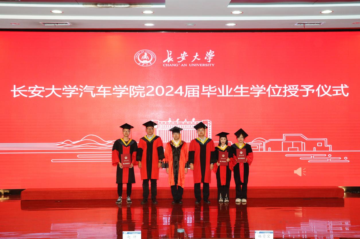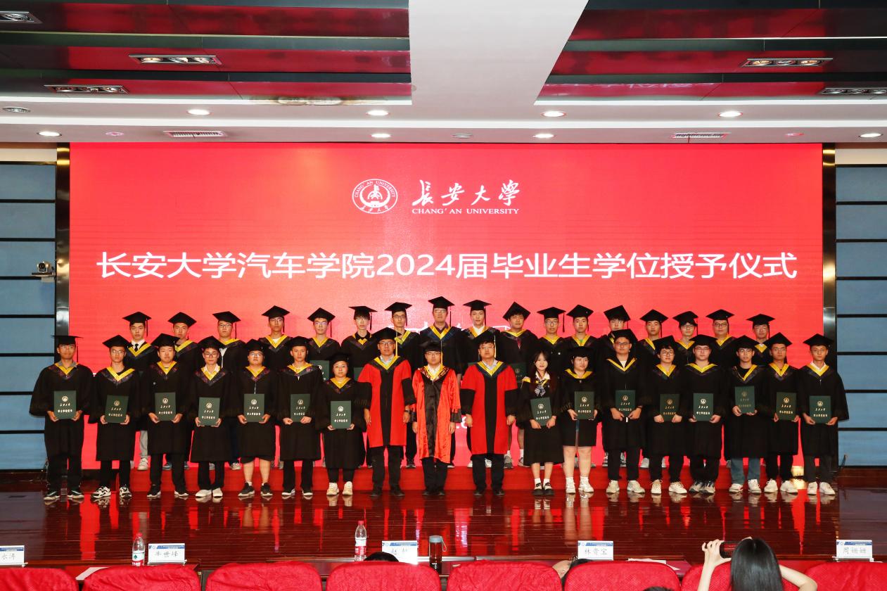 林贵宝宣读授予博士、硕士和学士学位学生名单,2024届毕业生身着学位服,按照专业、班级依次上台。做爱 学位评定分委员会主席赵轩教授、委员牛世峰教授和陈轶嵩教授逐一为毕业生拨穗正冠,颁发学位证书,并合影留念。