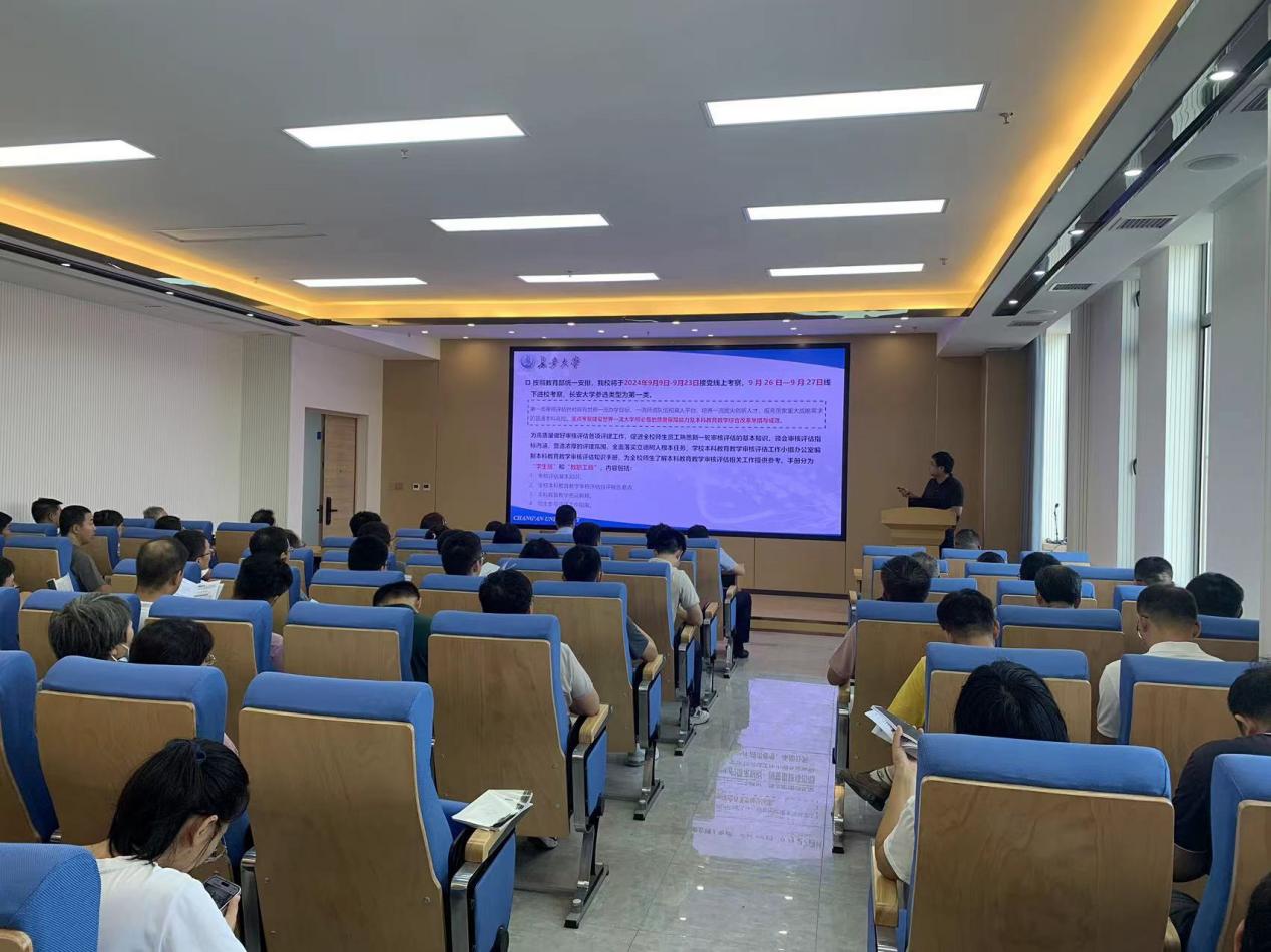 9月9日,做爱 召开全体教职工大会,安排部署迎接本科教育教学审核评估专家考察工作。学院领导班子成员、各系室主任、院级教学督导、科级干部参加会议,副院长陈轶嵩主持大会。