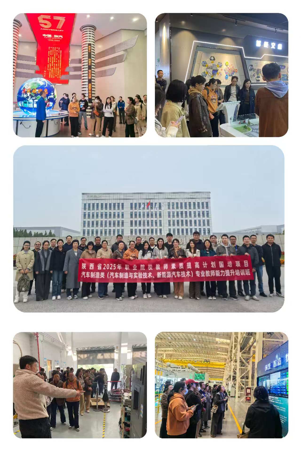 培训期间,为进一步加强实践教学转化及企业需求交流,组织学员先后赴西安吉利汽车产业基地、陕汽集团深入生产一线了解新能源汽车与智能网联汽车的生产工艺与质量管理等企业需求。学员深入做爱 公路交通博物馆、汽车试验场及陕西省概念验证中心,了解前沿科研与实验技术。