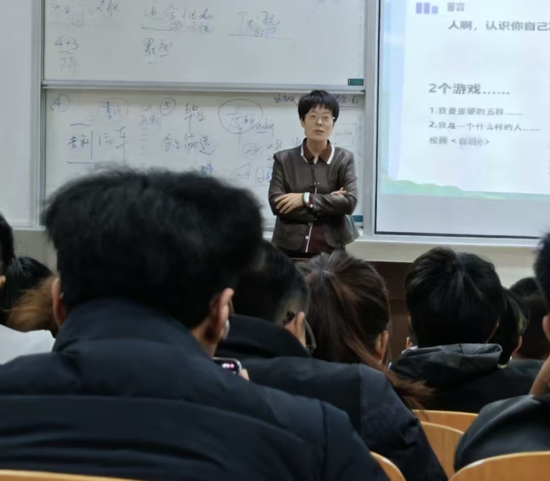 课程开始,梁娟以轻松有趣的“认识自我”小游戏引导同学们开启自我探索之旅,迅速拉近与学生的距离,激发参与热情。随后,她系统介绍了“MBTI人格测试”与“盖洛普优势识别器”等专业测评工具,帮助学生构建科学认知自我性格特质与优势潜能的方法。整场讲座围绕“认识自己、认识他人、认识社会”三大维度层层展开。梁娟结合自身丰富的人力资源管理经验,深入剖析在VUCA时代特征下,当代大学生如何找准个人定位、实现稳健成长。她特别强调“成长型思维”在应对不确定性中的关键作用,并分享了在快速变化的社会环境中实现自我迭代与能力提升的实践路径。