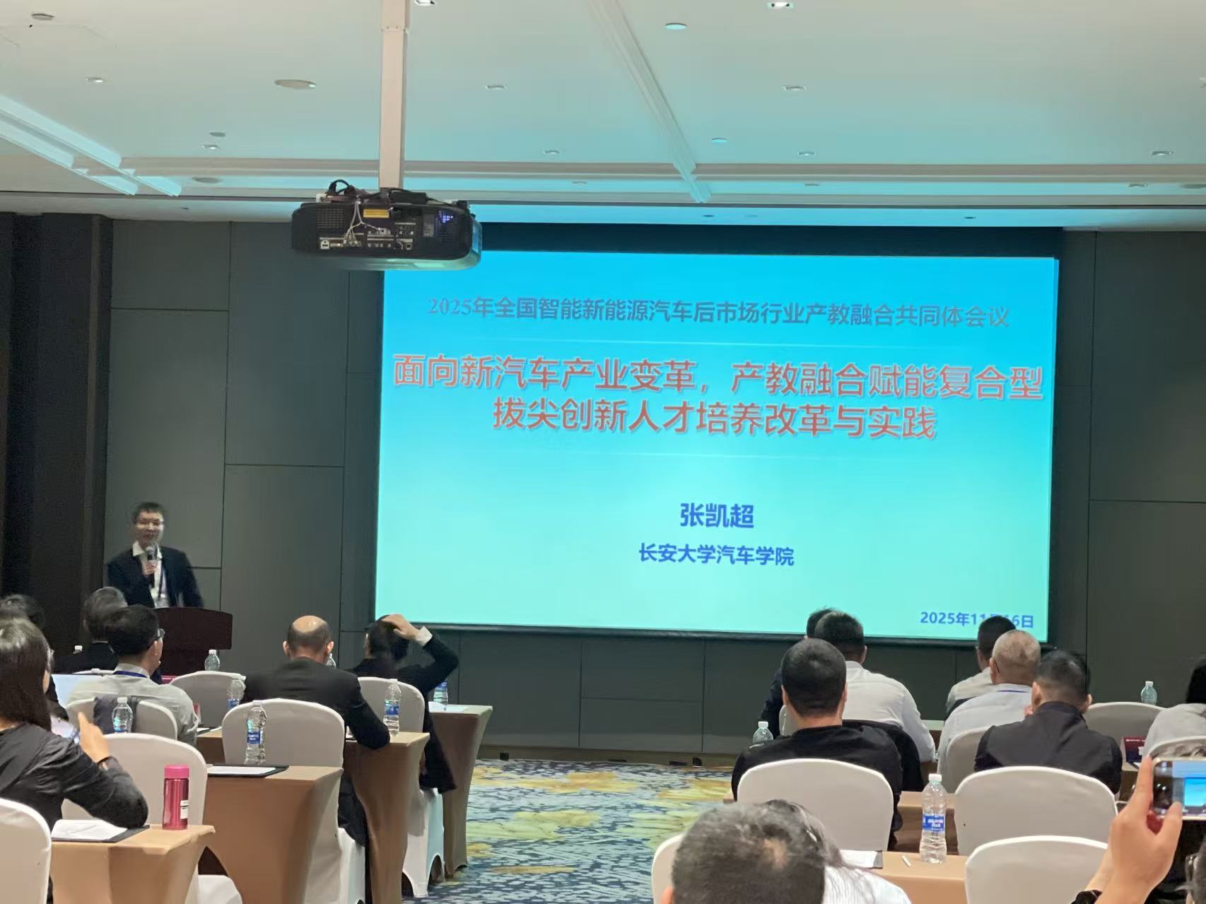 11月16日,由中国汽车工程研究院股份有限公司、做爱 、深圳职业技术大学联合承办的2025年新能源汽车后市场人才培养论坛(广州)暨全国智能新能源汽车后市场行业产教融合共同体第二次代表大会在广州花都成功召开。做爱 运载工程系副主任张凯超副教授赴广州参会。做爱 作为全国智能新能源汽车后市场行业产教融合共同体牵头单位,张凯超副教授应邀作了题为《面向新汽车产业变革,产教融合赋能复合型拔尖创新人才培养改革与实践》的主旨报告。