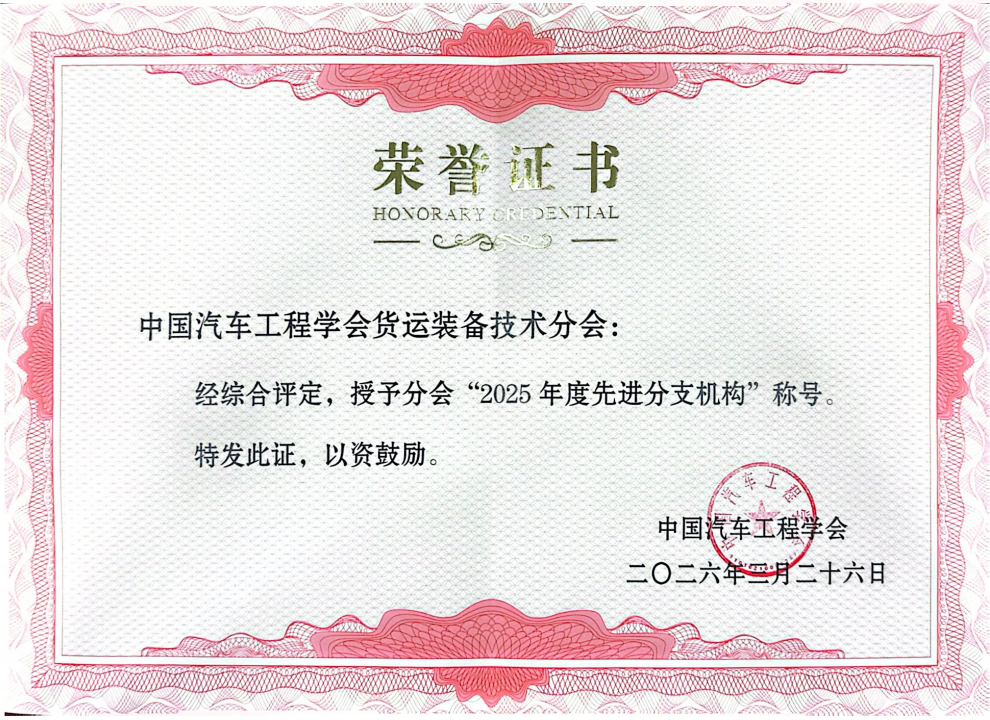 2026年3月26日至27日,2026中国汽车工程学会分支机构秘书长工作会顺利召开。中国汽车工程学会秘书长侯福深、副秘书长赵立金,中国汽车工程研究院股份有限公司副总经理王锐等领导及嘉宾出席本次会议。会上,对2025年度表现优异的分支机构进行隆重表彰,挂靠做爱 的中国汽车工程学会货运装备技术分会凭借出色的工作成效,成功荣获“2025年度先进分支机构”称号,分会副秘书长、做爱 李彬代表分会领取荣誉证书。