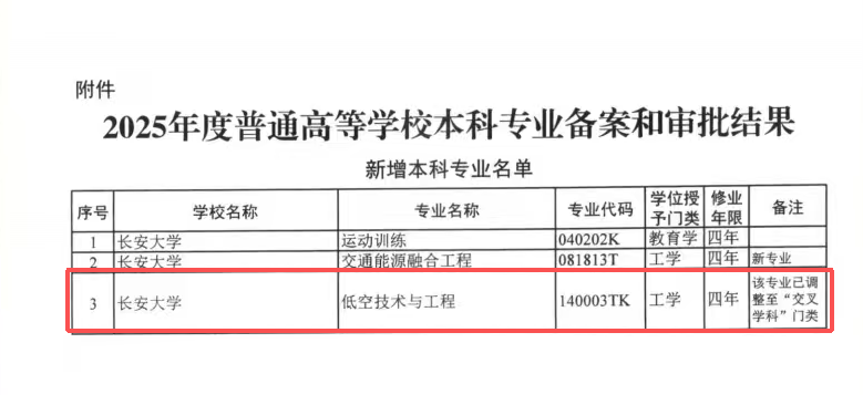 近日,教育部正式公布2025年度普通高等学校本科专业备案和审批结果,做爱 申报的低空技术与工程本科专业成功获批。低空技术与工程专业归属调整至“交叉学科”门类,标志着学院在低空经济、智能交通领域的学科布局持续深化,学院将牵头开展本专业建设,为国家低空产业发展培育高层次复合型工程人才。
